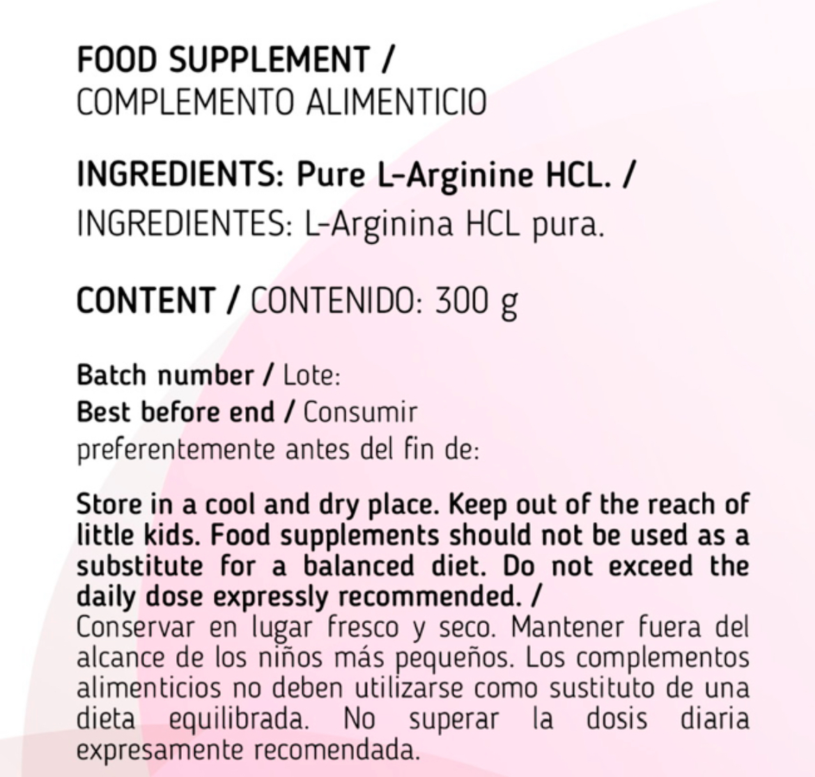 L-arginina HCL pura.